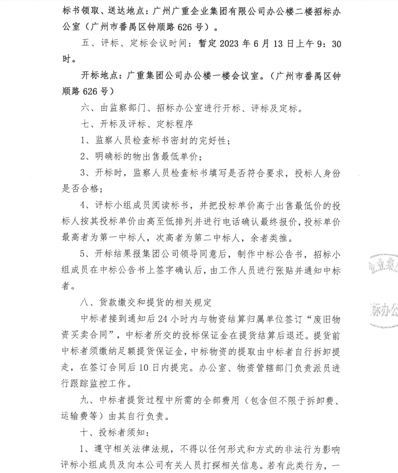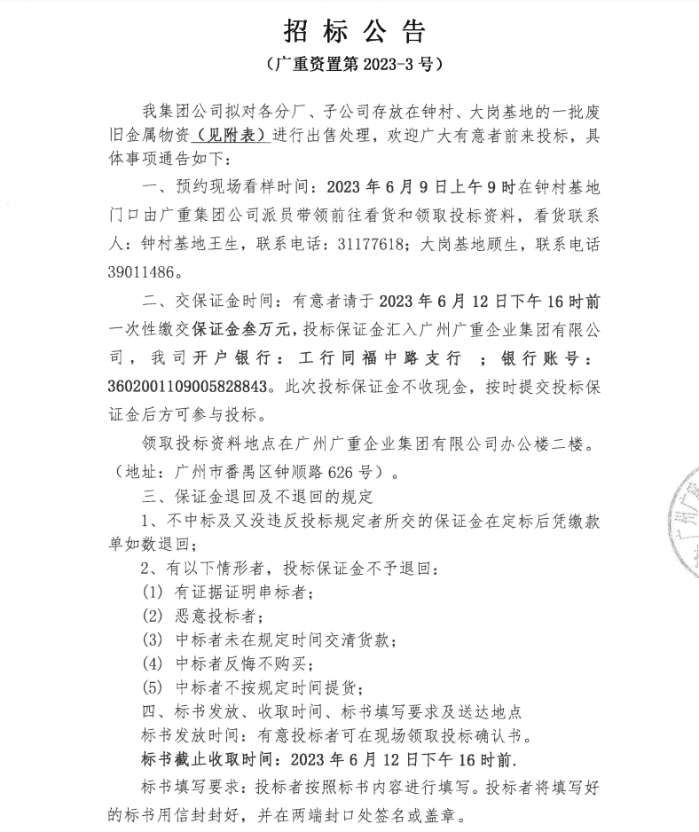 廢舊金屬物資處置(廣重資置2023-3號(hào))